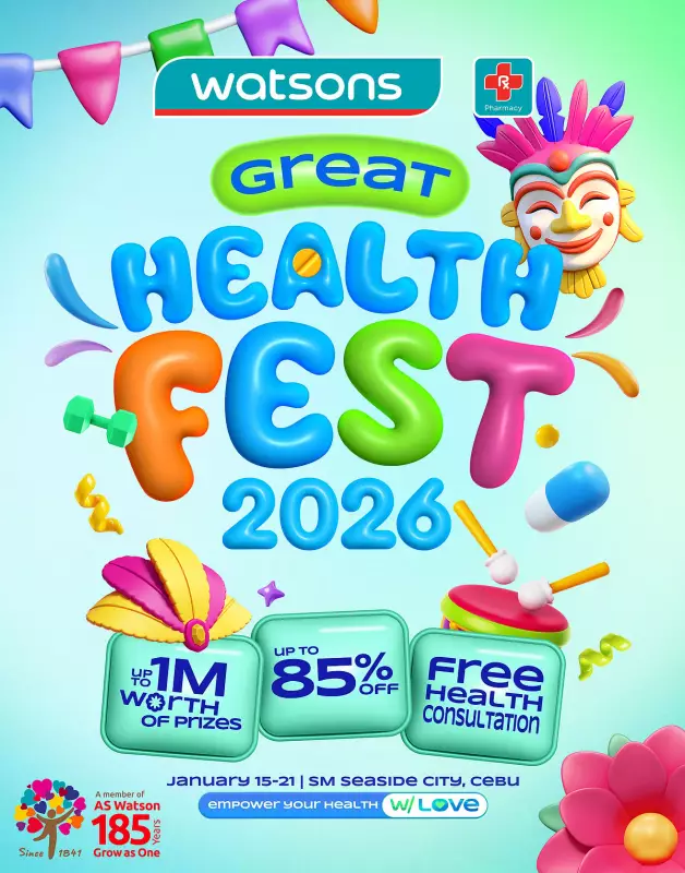 The wait is over for health and wellness enthusiasts in the Visayas. Watsons Philippines is set to launch its much-anticipated Great Health Fest 2026, promising a week of massive savings, exciting activities, and life-changing prizes. The event will transform the Atrium of SM Seaside City Cebu into a premier wellness destination from January 15 to 21, 2026.